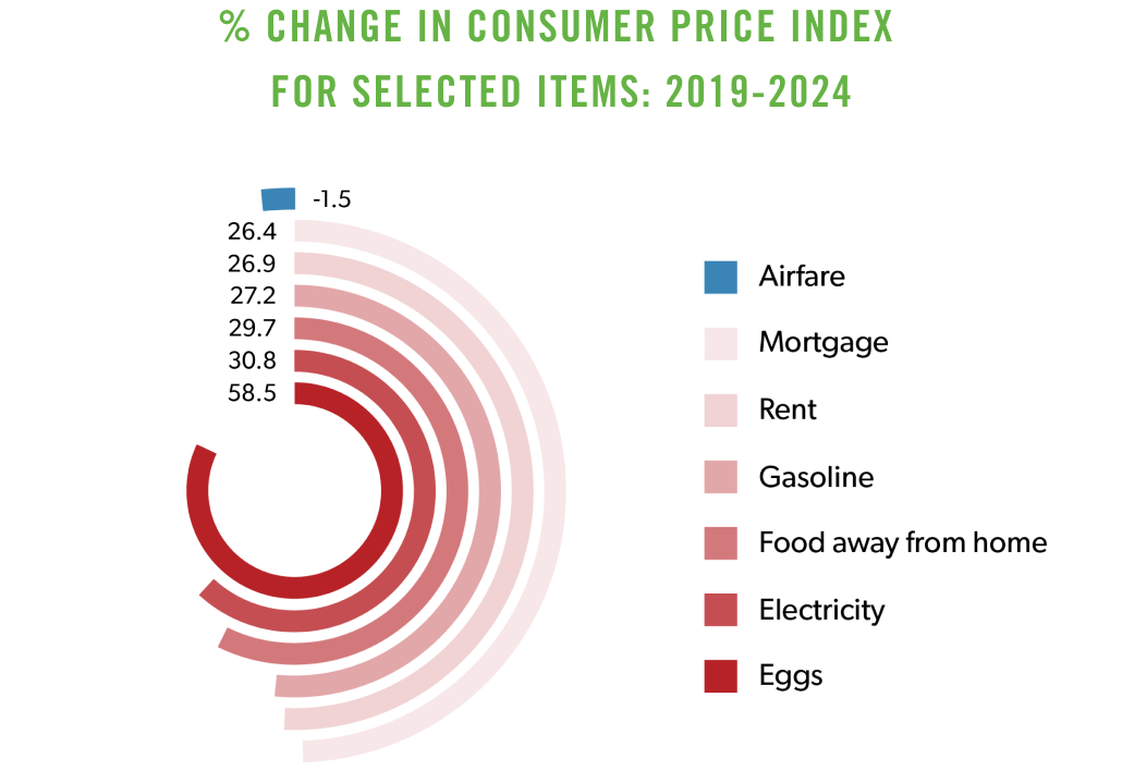 Consumers are facing sharply rising prices for food, gas, housing and electricity, but not for airfares. Competition between air carriers has kept airfares at historically low levels.